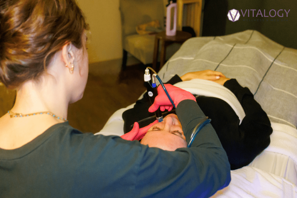 HydraFacial treatments at Vitalogy Wellness and Med-Spa provide gentle cleansing, exfoliation, and hydration while supporting the skin barrier. HydraFacial treatments are often used to maintain skin health between more advanced procedures.